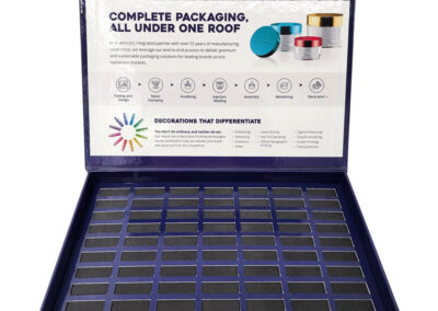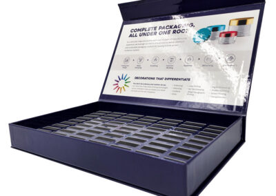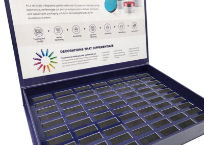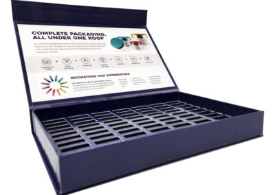 We can design modular sample boxes with interchangeable components, allowing you to refresh specific sections without replacing the entire box. Alternatively, our warehouse and release program means we can store bulk quantities and produce small update runs as your product line evolves. Digital manufacturing makes these smaller update runs cost-effective.