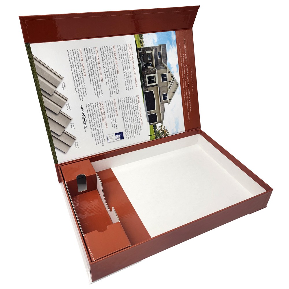 Yes, custom is what we do. Whether you’re packaging flooring samples, fabric swatches, cosmetic products, or architectural materials, we design boxes around your specific samples. Our digital laser cutting capabilities mean we can create precise compartments and cutouts for even the most unusual shapes without expensive die creation.