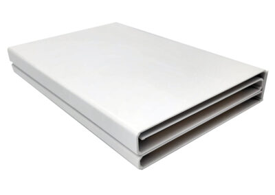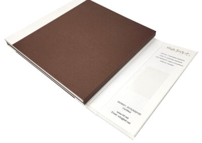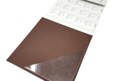 It varies widely based on the materials and how they’re used. Flooring kits might be binder-style with 4″x4″ or larger samples. Paint or finish kits might be compact fan decks. Larger architectural materials might need portfolio cases or presentation boxes. We work with you to determine the optimal format based on sample sizes, how many materials you’re showcasing, transportation considerations, and how designers typically use sample kits in your industry.