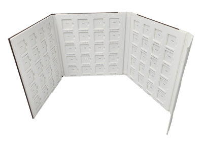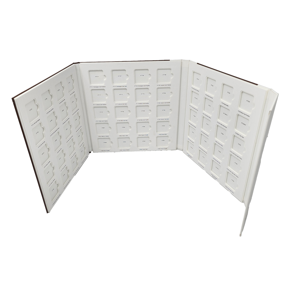 Trifold designed to hold large amount of surface swatches, making this and effective sales tool.